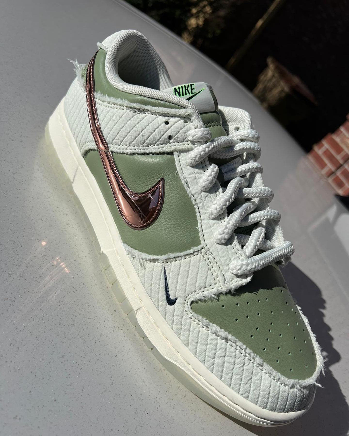 アリゾナ・カージナルスのQBカイラー・マレーは、マレーとフィールド内外で目立つという彼の使命を称えるために、ナイキと協力してナイキ ダンク ローをリリースした。このユニークなNike Dunk Low Be 1 of Oneは、オリーブレザーのベースにライトグリーンのキルティングオーバーレイを組み合わせているのが特徴だと伝えられている。 サイドパネルのメタリックなスウッシュがスニーカーに新たな次元を加えます数量限定ですのでお見逃しなく!