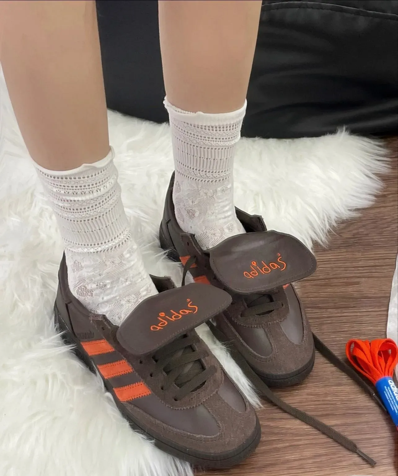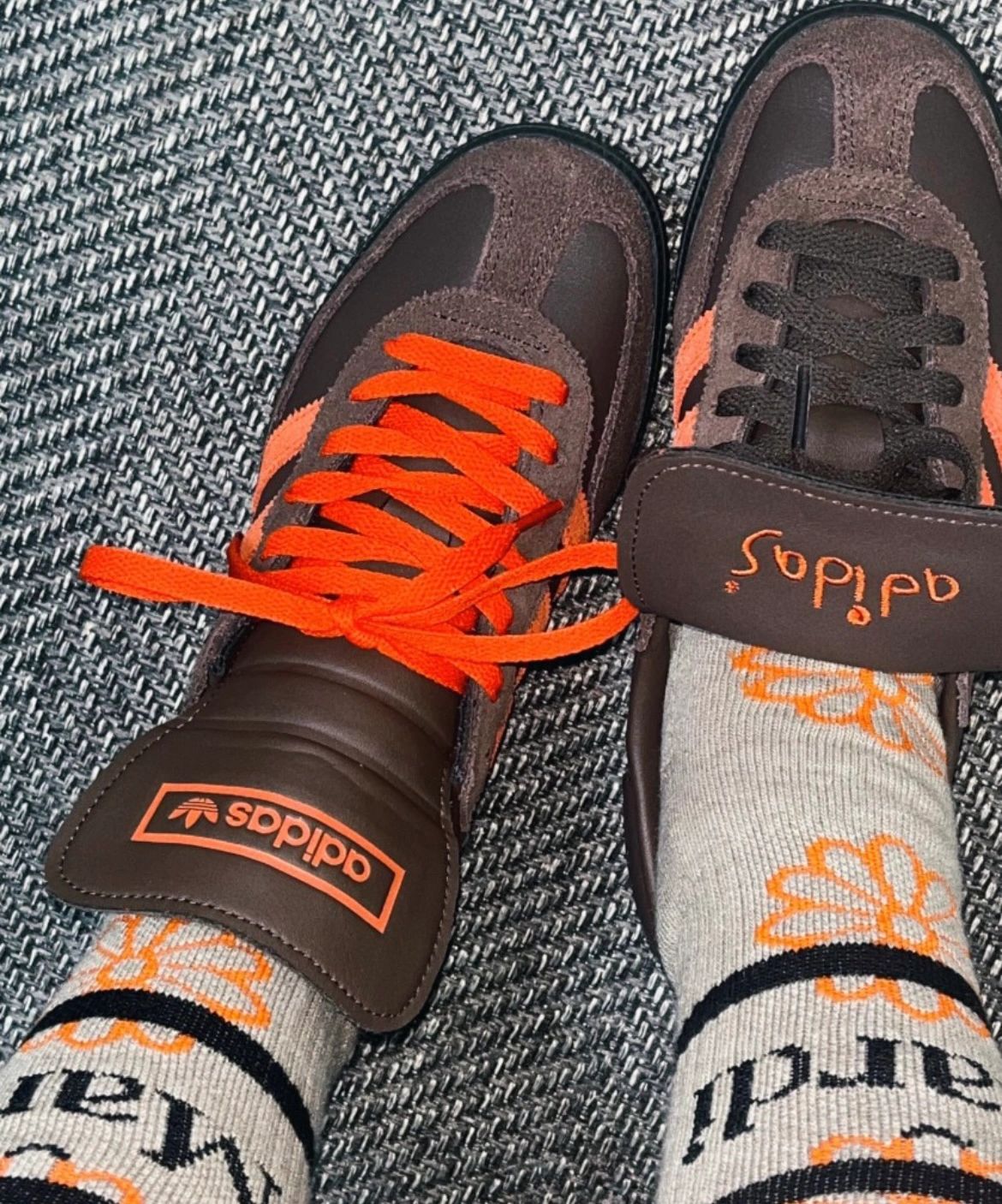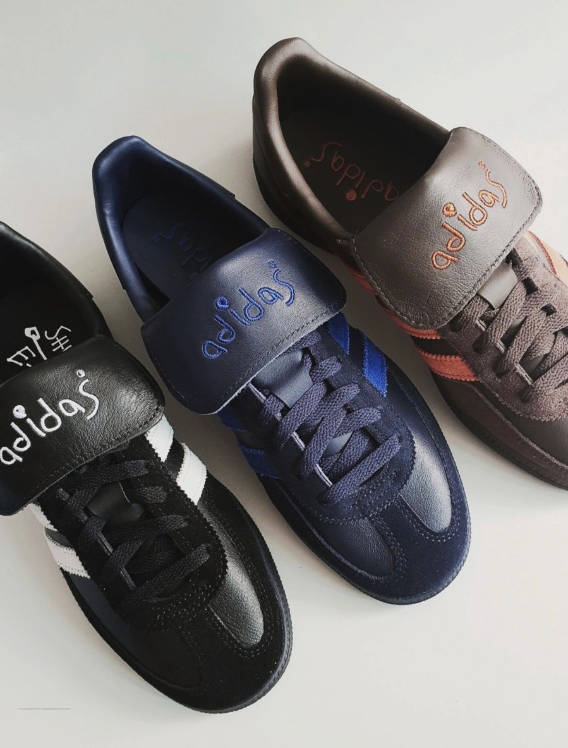 アッパーはソフトレザーを使用し、折り畳める拡張タンを採用し、インソールとタンに施されたE-WAX手書きの「adidas」アートスタイルの文字も超キュートです。
