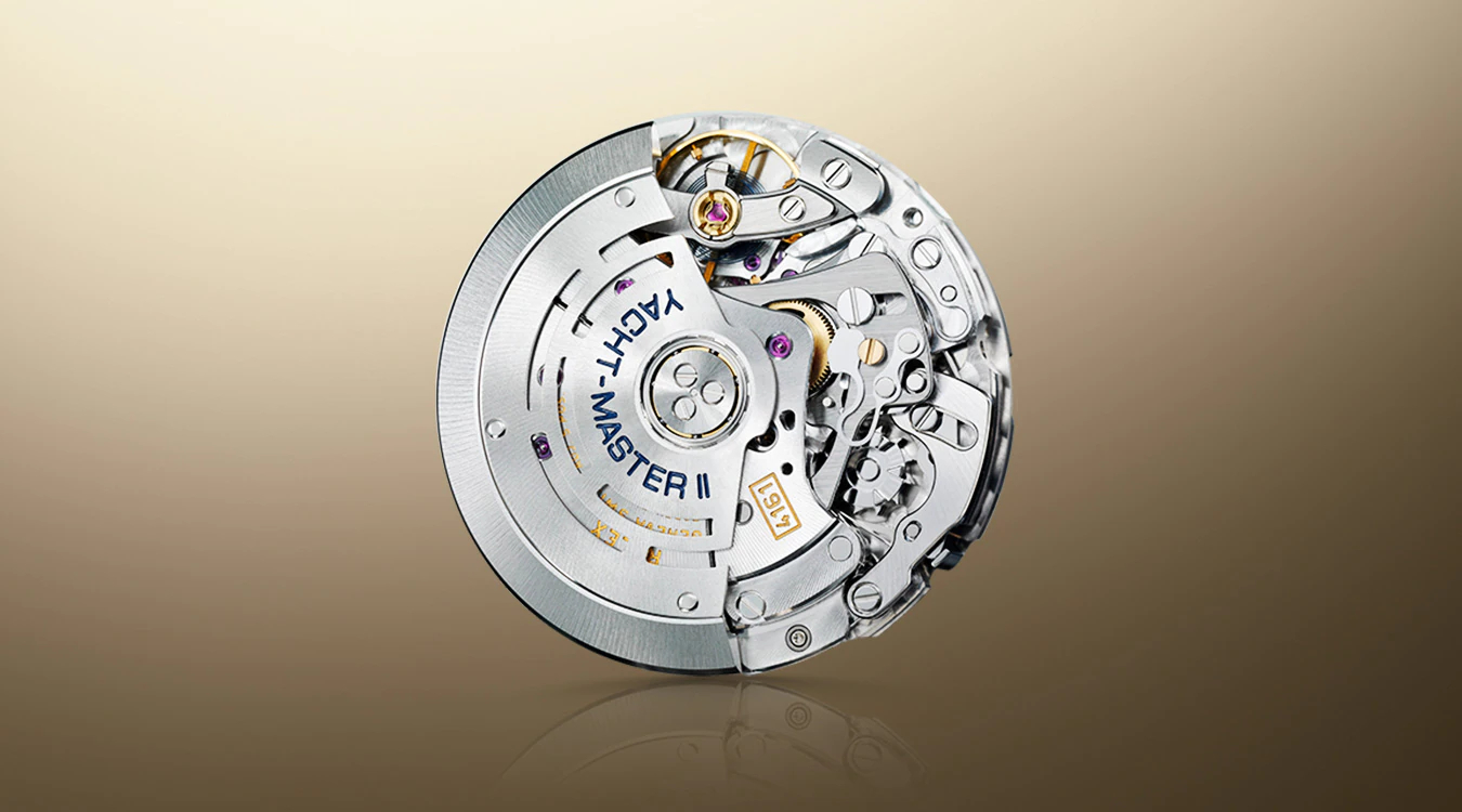 ヨットマスターⅡには ロレックスが開発・製造した機械式自動巻クロノグラフムーブメント キャリバー 4161が搭載されている。その構造 製造品質と革新的な特徴により 並外れた精度と信頼性を誇る。ロレックスの技術の結晶ともいえるこのムーブメントは35000時間以上もの開発期間を経て完成し 特許機能を搭載した 約360 個の部品で構成されている。一部の部品はロレックスの自社内で行われるミクロ製造技術 UV-LiGA で製造されている。この技術により 従来の方法では製造できなかった微細な部品や複雑な形状の部品が製造できるようになった。