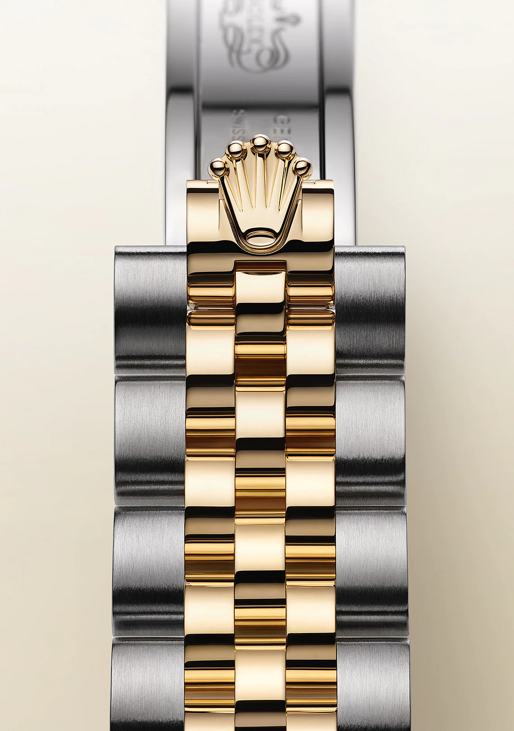 ロレックスのブレスレットやクラスプの設計 開発 製造 そして製品に課される厳しい試験には 最先端のハイテク技術が活用されている。また すべての時計の部品と同様に 人間の目による照査によって 完璧な美しさが保証されている。ジュビリーJubilee しなやかで快適な5列リンクの金属のブレスレットで 1945年にオイスター パーペチュアル デイトジャストの発売に合わせて特別にデザインされた。