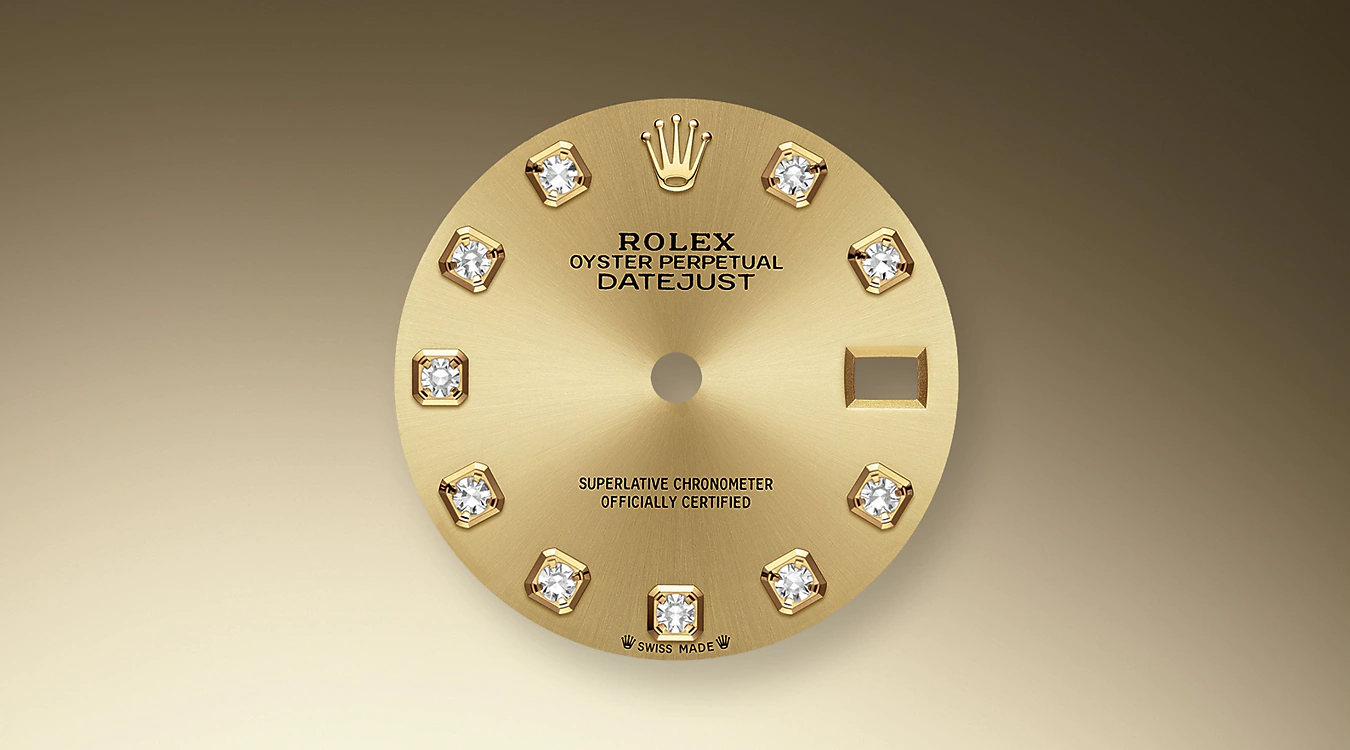 サンレイ仕上げは オイスター パーペチュアルコレクションの多くのダイアルに繊細な光の反射をもたらす。これはダイアルの中心から外側に向かって溝を作る 熟練のブラッシング技術によるものだ。光はそれぞれの彫りに沿って均一に拡散され 手首の位置に応じてわずかに動く 特徴的な輝きを生み出す。